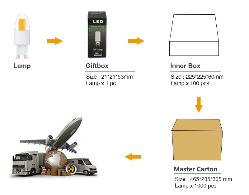 2.The G9 LED bulb has 1PCS LED that emits up to 280lm lumens of warm white (3000K), natural white(4500K), or cool white (6000K)